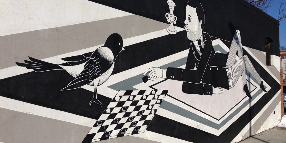 Playing Checkers May 30, 2015MuralShawsusansabella In the alley, alongside Capital Checkers. The Duke playing checkers with a sparrow by candlelight. 2015 Share this: Click to share on X (Opens in new window) X Click to share on Facebook (Opens in new window) Facebook Like Loading... Related