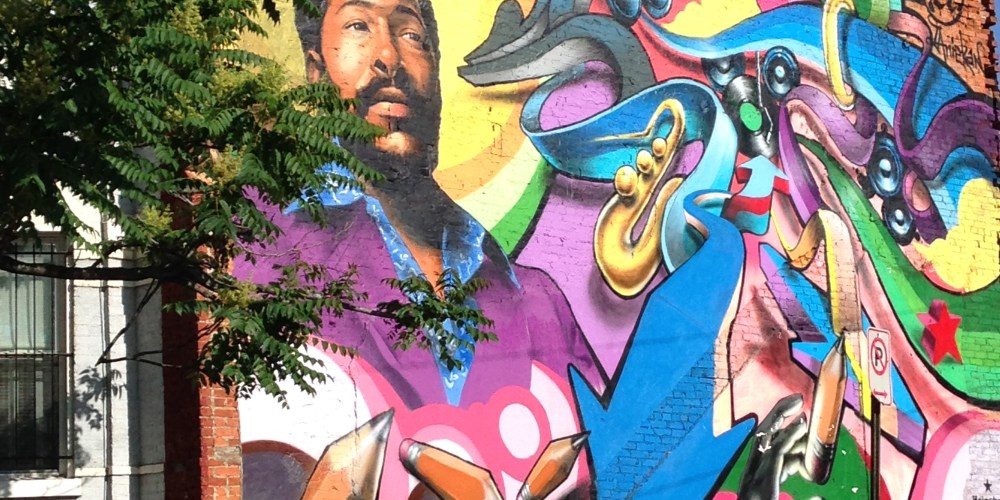 This is the mural that got me interested in documenting street art here in DC. I had started riding my bike to and from work, and then began taking early morning rides on the weekends, through Shaw, downtown and over to the Hill. I had noticed the Marvin Gaye mural on my travels, and it had become a bit of a landmark for me. And then after a winter of not riding, I couldn’t find it. I was sure I was in the right spot, at 7th & S, but now I saw a new mural of Gaye on the other side of the street. Whaaat? And a new row house stood on the lot where the original mural had been. The mural was gone for good.
