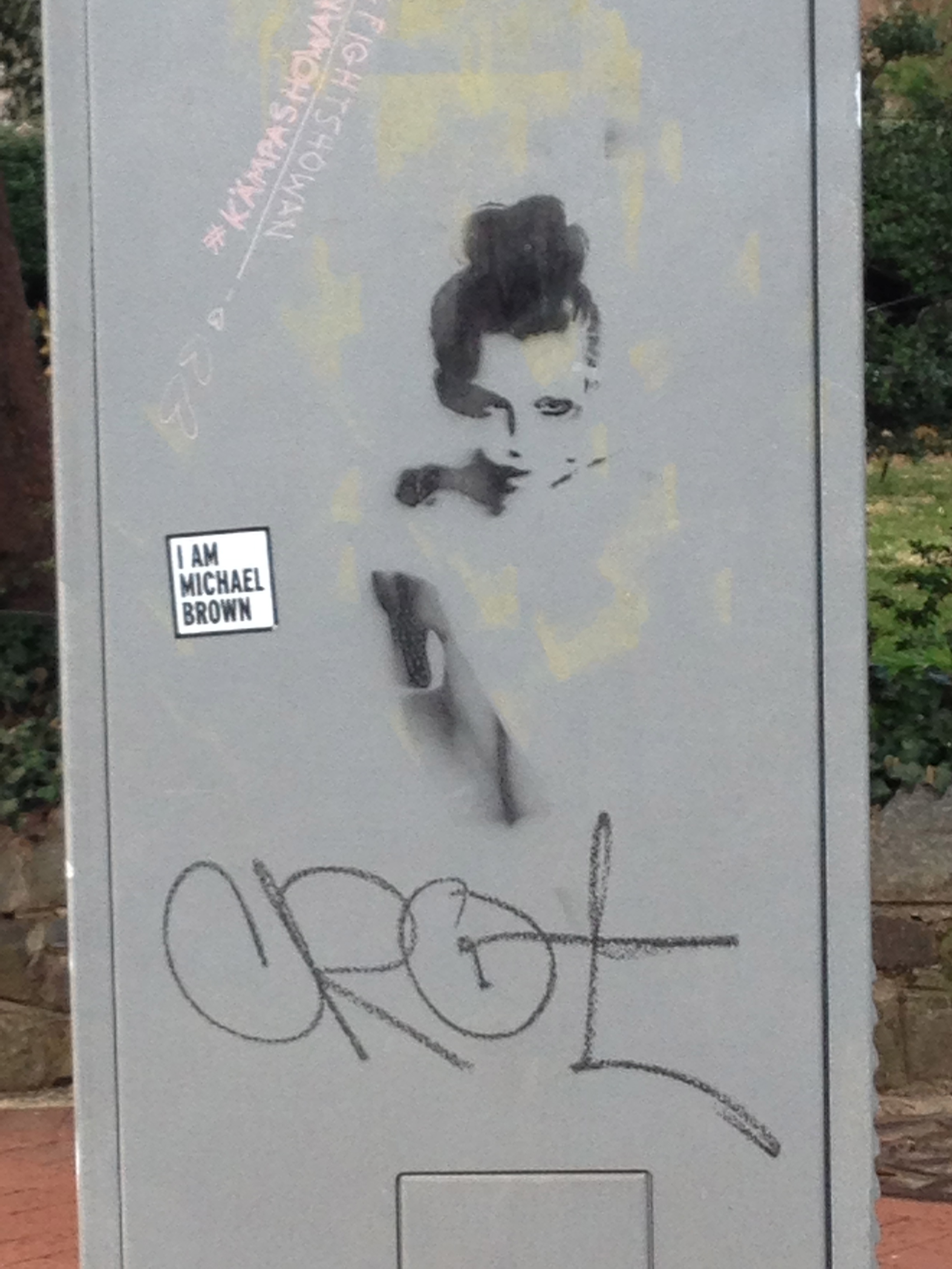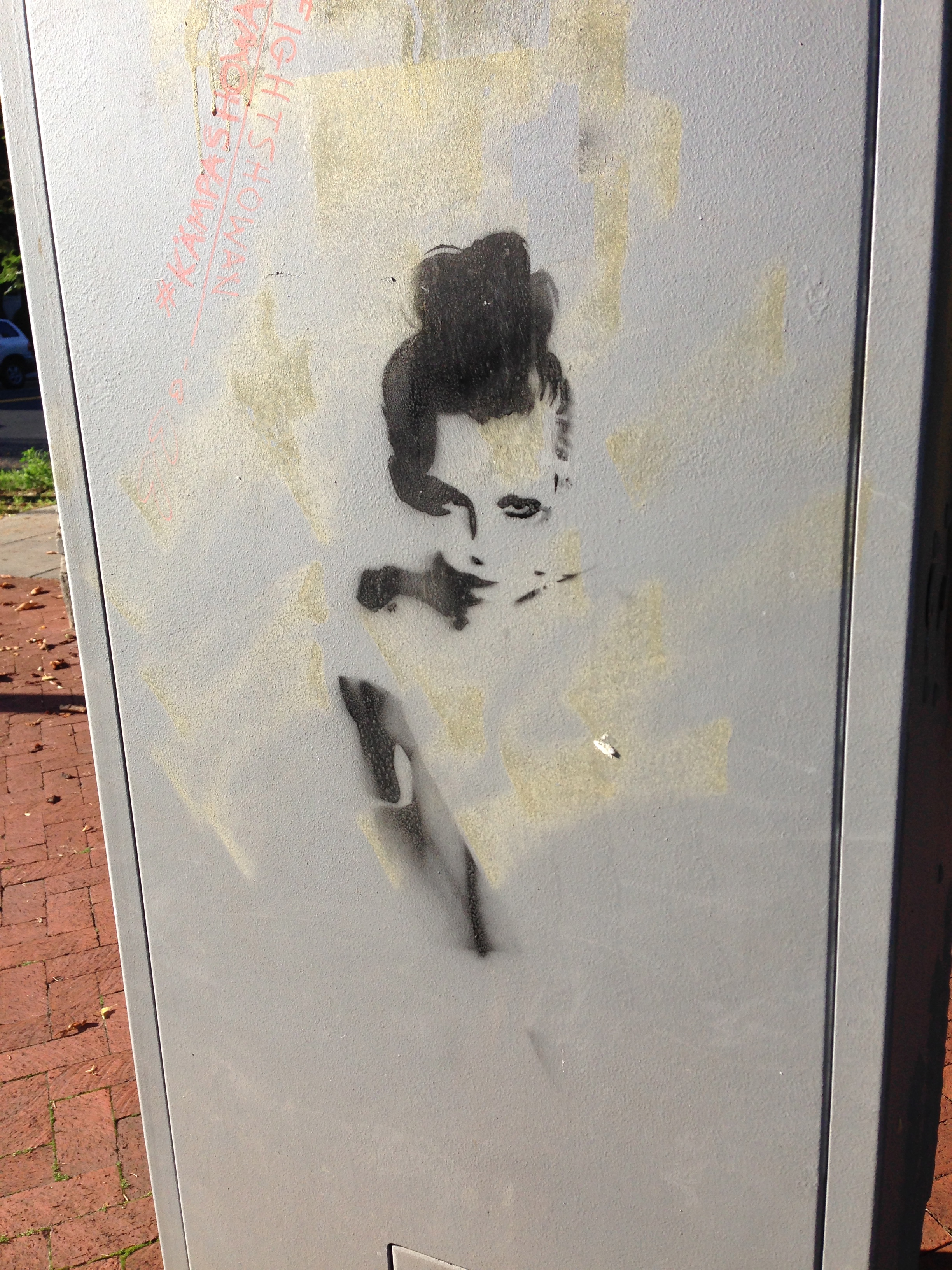 When I pulled up to 16th & T Sts this morning, she was gone. I couldn’t believe it. Painted over by a city worker. The photo on the left was taken in 2014 — and since then, she has greeted me while I waited for the light to change 100s of times. I miss her already.