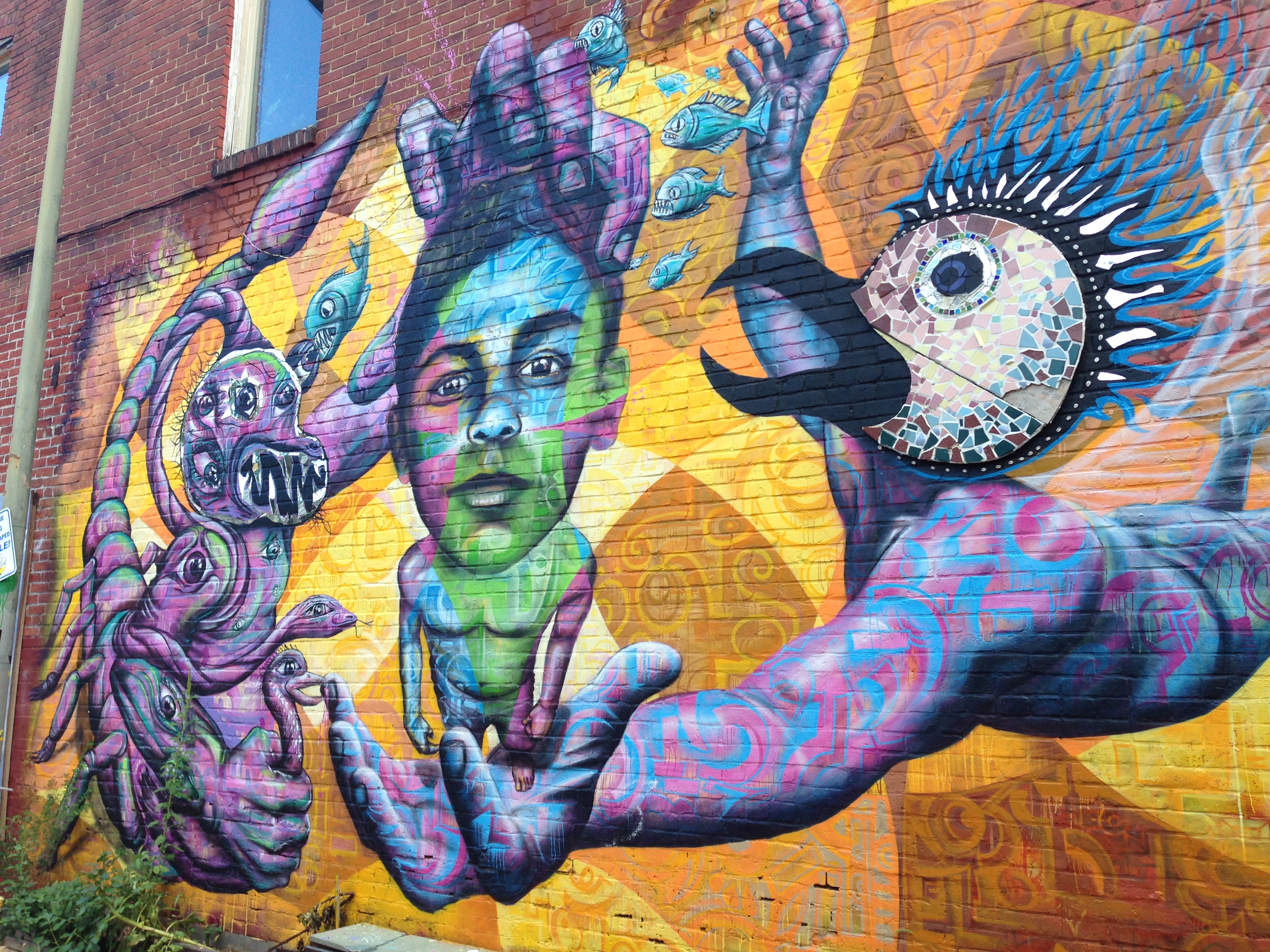 If anyone told me that there were dozens of murals in DC, I wouldn’t have believed it. Sure Marilyn and a few others — but all of these wild and beautiful works of art on our streets and in our alleys? No way. Yet, here they are. Certain neighborhoods seem to have really embraced the medium: U Street, Columbia Heights, Adams Morgan, Brightwood and Park View. I haven’t ventured much into Southeast or Far Northeast yet, so we’ll see what’s there. But so far, I amazed that I find new art on the streets every weekend, almost everywhere I go.