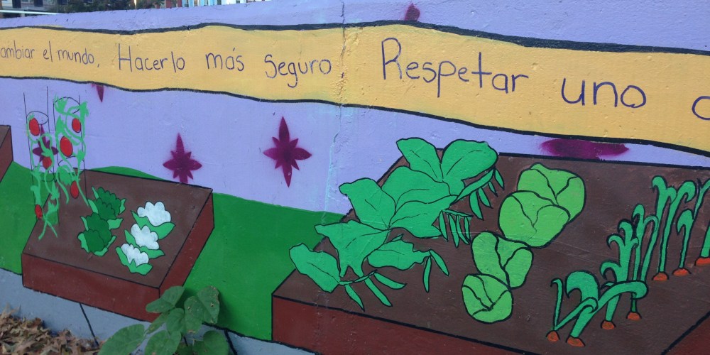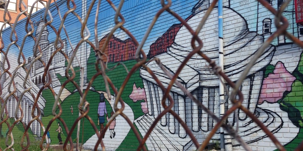 The back wall of Harriet Tubman Elementary School playground.