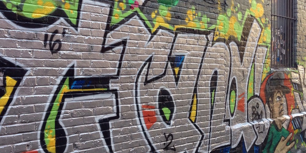 No idea who or what Pesk is — but I love this face. The features and colors. Just great. This alley is filled with graffiti — and this guy really stands out.