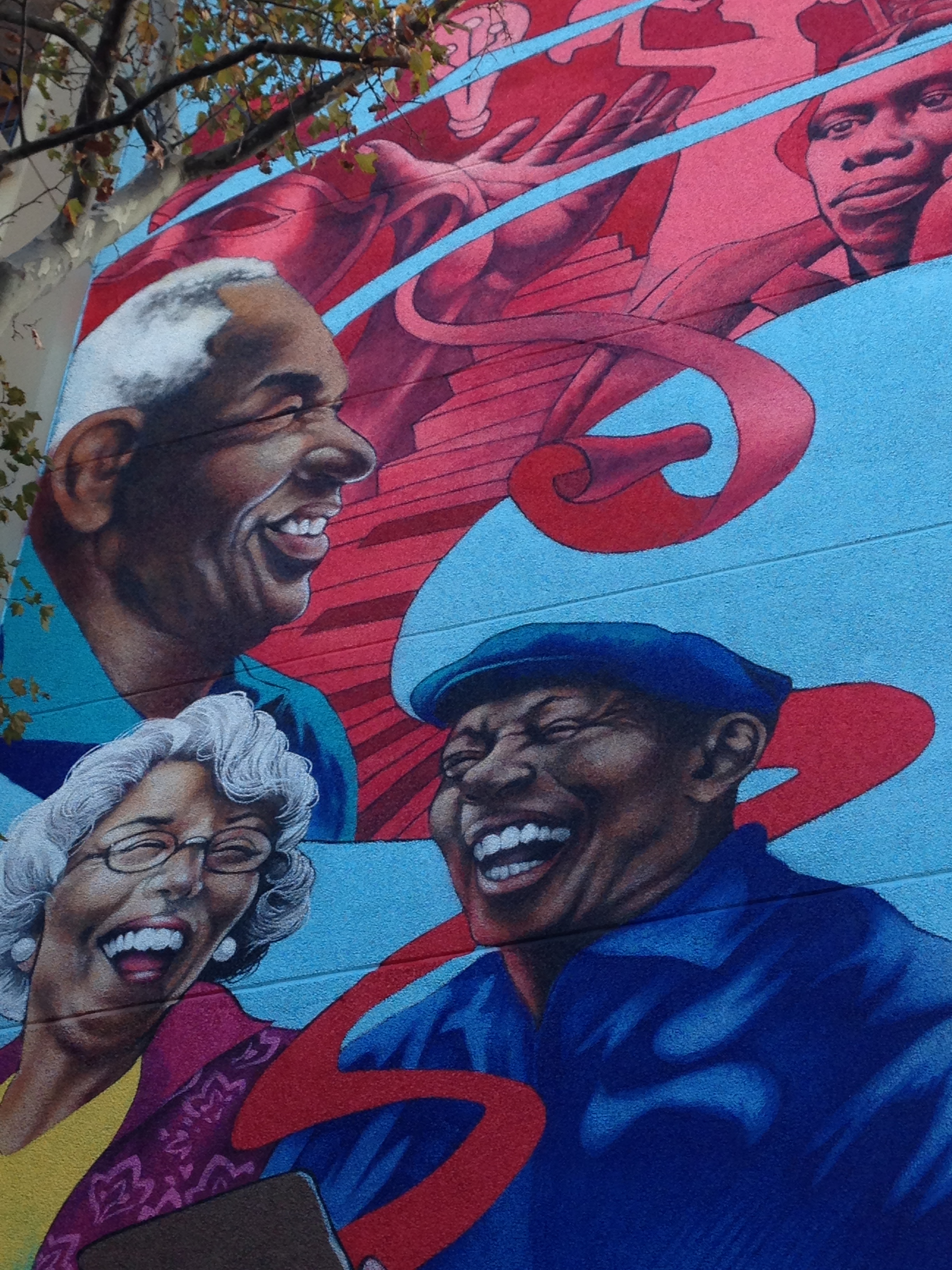 When I worked on U Street in the 90s, this mural was a beautiful, vibrant landmark — and now it’s back, courtesy of the ongoing destruction/construction of the neighborhood. I love the guy on the drums in the lower right corner.